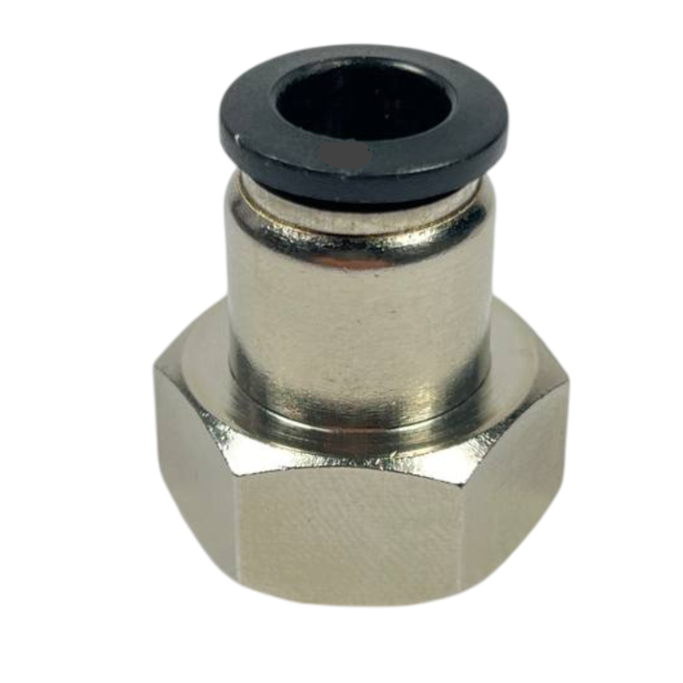 Фітинг-перехідник для пневмошланга або твердої трубки із зовнішнім діаметром 8 мм. З іншого боку штуцера внутрішнє різьблення 1/2". Пуш фітинг має багатозубчиковий цанговий затискач, який забезпечує надійне кріплення трубки у фітингу.